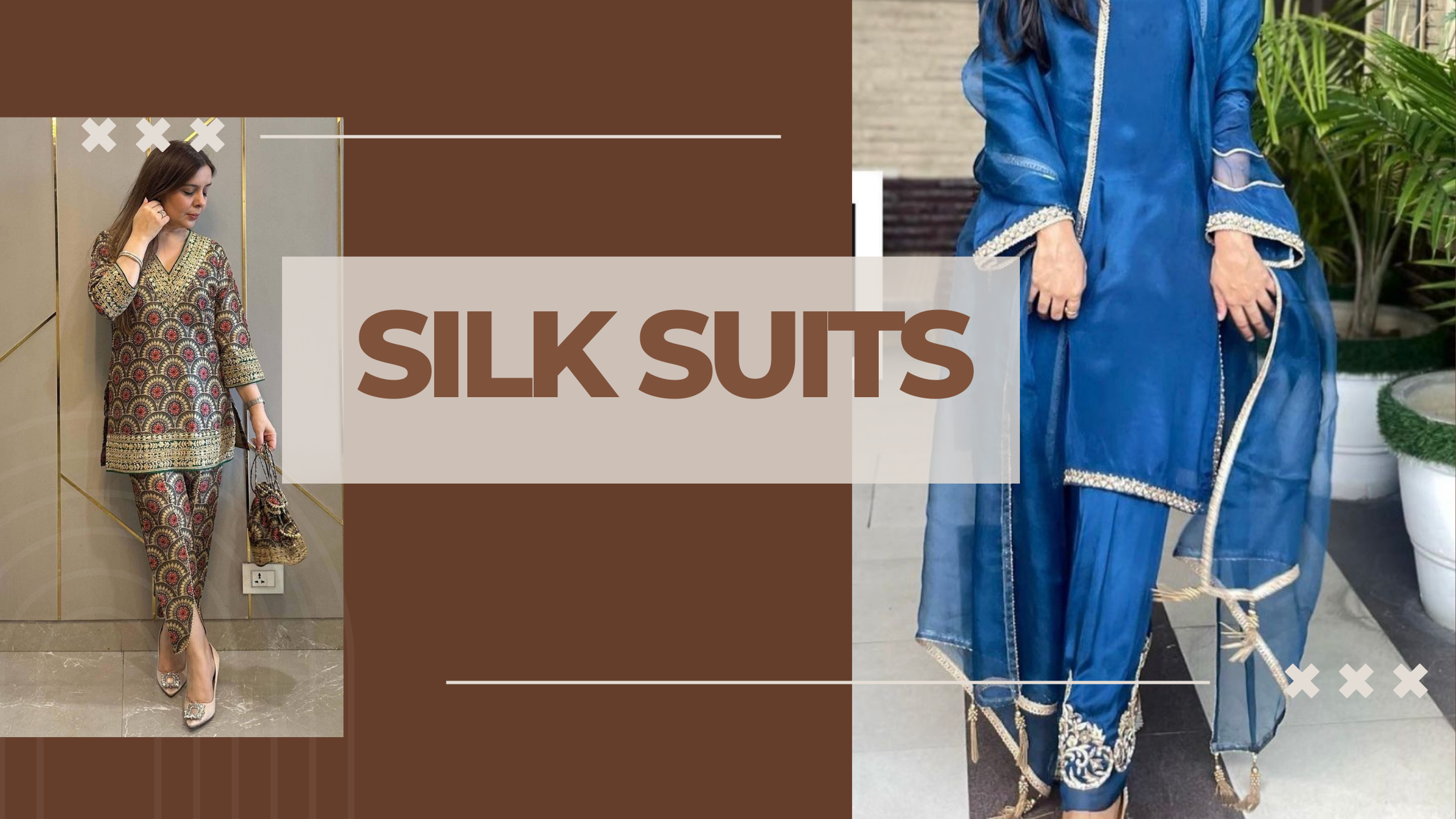 Silk suit designs for ladies include straight-cut suits, Anarkali styles, palazzo sets, and modern kurta-pant combinations. Contemporary designs focus on minimal detailing, trendy colors, and lightweight silk blends for a youthful appeal.